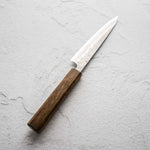 The Petty knife, a quintessential tool in Japanese cuisine, is a smaller utility knife used for precise, delicate tasks. Often considered a smaller sibling to the chef's knife, it excels in hand-held tasks like peeling, trimming, and intricate cutting. Its versatility makes it an essential for detailed culinary work.