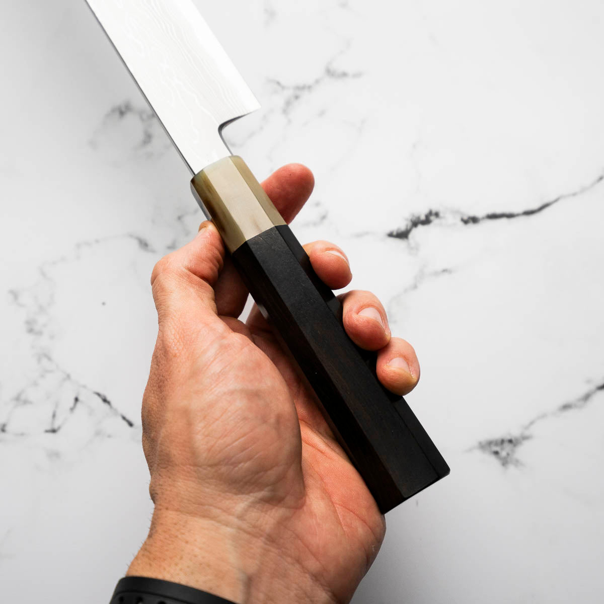 In an exclusive collaboration between Chef’s Edge and Sakai Kikumori, Nakagawa-san crafted a unique series of knives featuring taller blade profiles, specially designed to deliver outstanding handling, comfort, and cutting performance. Each blade embodies Nakagawa’s deep commitment to excellence and showcases why he is becoming one of Japan’s most celebrated knife-makers.