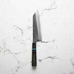 The Bunka knife, a versatile and traditional Japanese kitchen tool, features a distinctive, angular tip and a wide blade. It's designed for precision tasks like slicing, dicing, and chopping. Ideal for handling vegetables, meat, and fish, the Bunka is a multifunctional knife celebrated for its utility and unique aesthetic.