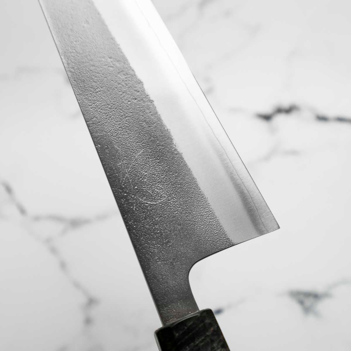 Japanese SKD steel is a high-carbon, semi stainless steel much like Aogami 2 in it’s performance and sharpening feel. It can take an extremely fine edge, has excellent edge retention and is a joy to use when crafted by experienced craftsman. It will still patina lightly over time like other semi-stainless steels, without the added corrosion risk.