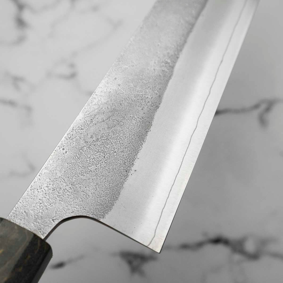 Japanese SKD steel is a high-carbon, semi stainless steel much like Aogami 2 in it’s performance and sharpening feel. It can take an extremely fine edge, has excellent edge retention and is a joy to use when crafted by experienced craftsman. It will still patina lightly over time like other semi-stainless steels, without the added corrosion risk.