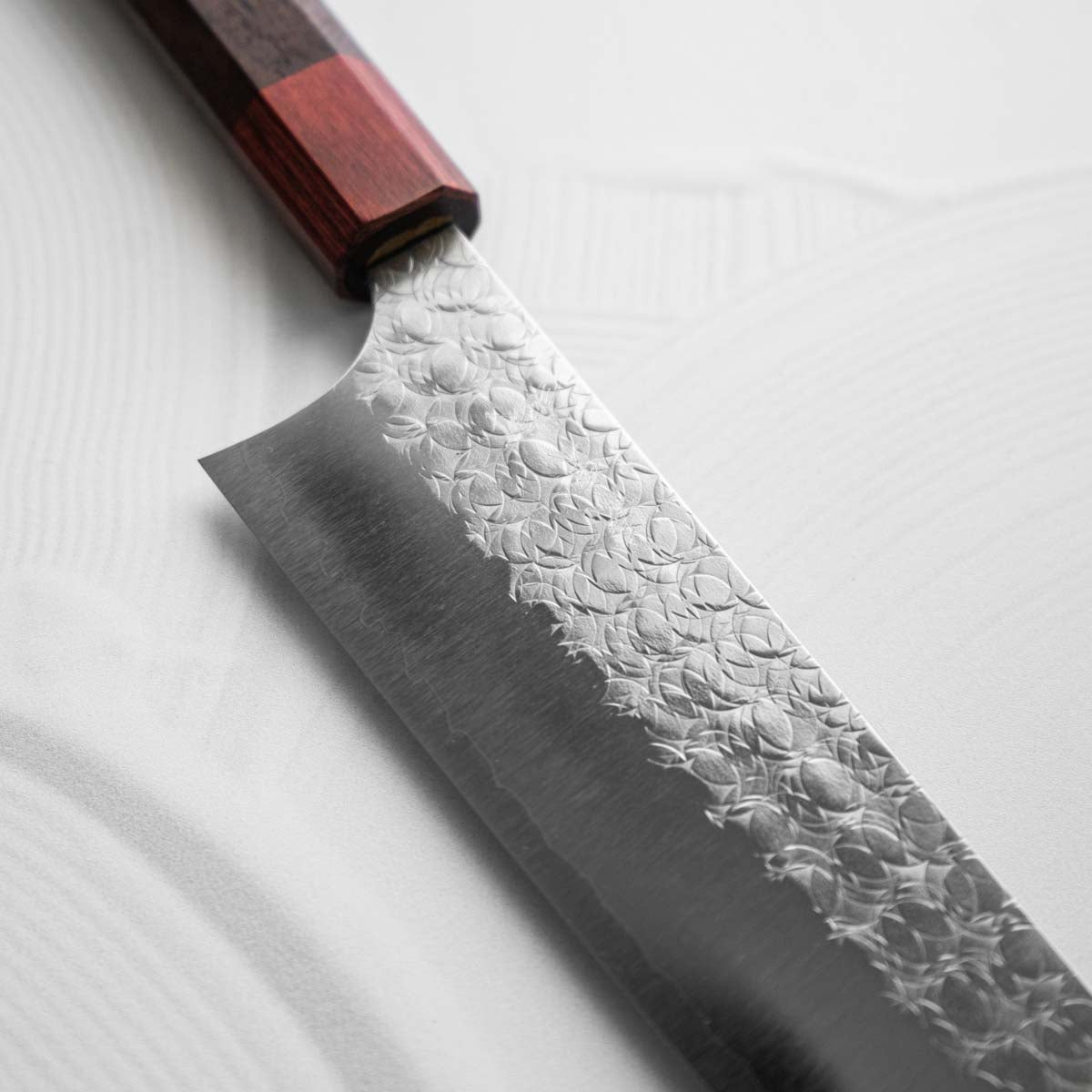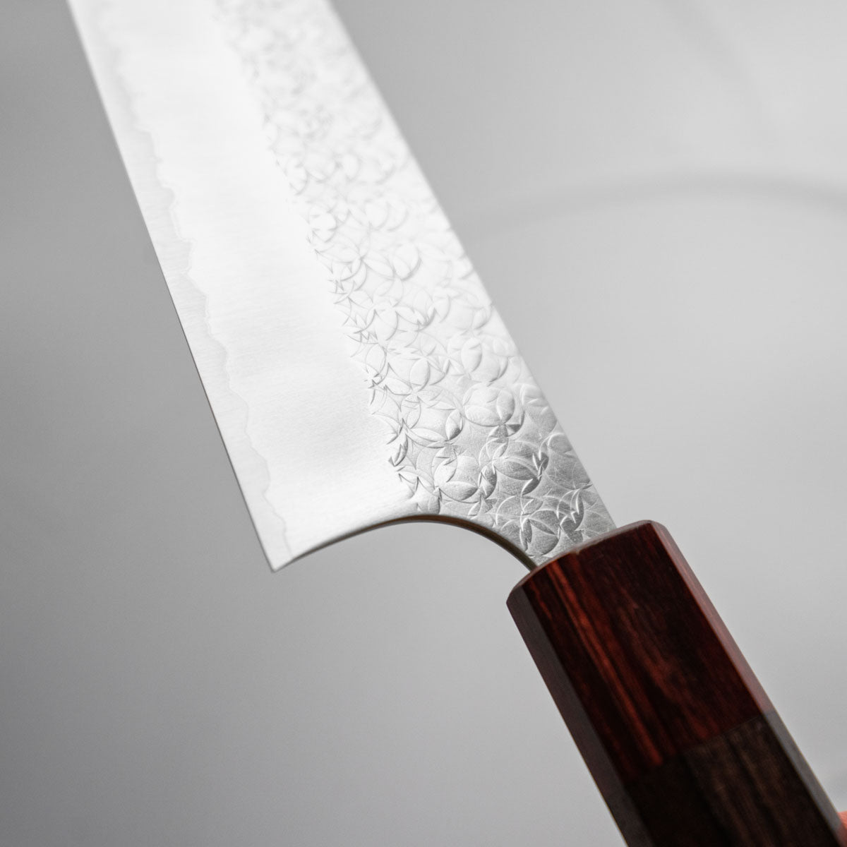 Under his personal brand Kintaro, he hand-forges blades featuring some of the most striking Damascus patterns we’ve seen, with crisp lines and elegant finishes. His knives are lightweight, thin behind the edge, and a pleasure to sharpen and maintain — a combination that makes them equally suited to professional kitchens and passionate home cooks.