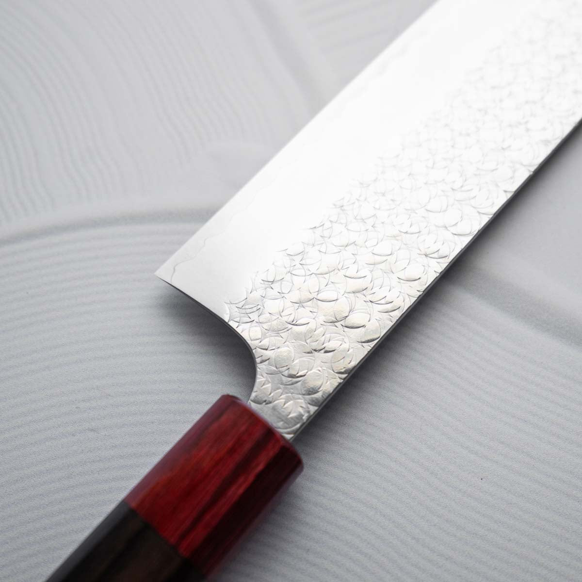 Under his personal brand Kintaro, he hand-forges blades featuring some of the most striking Damascus patterns we’ve seen, with crisp lines and elegant finishes. His knives are lightweight, thin behind the edge, and a pleasure to sharpen and maintain — a combination that makes them equally suited to professional kitchens and passionate home cooks.