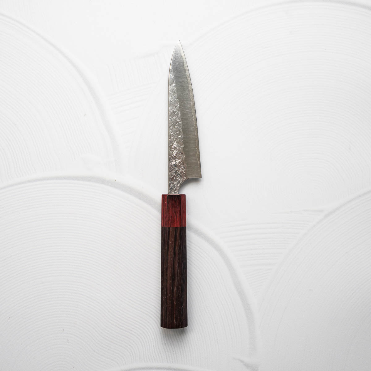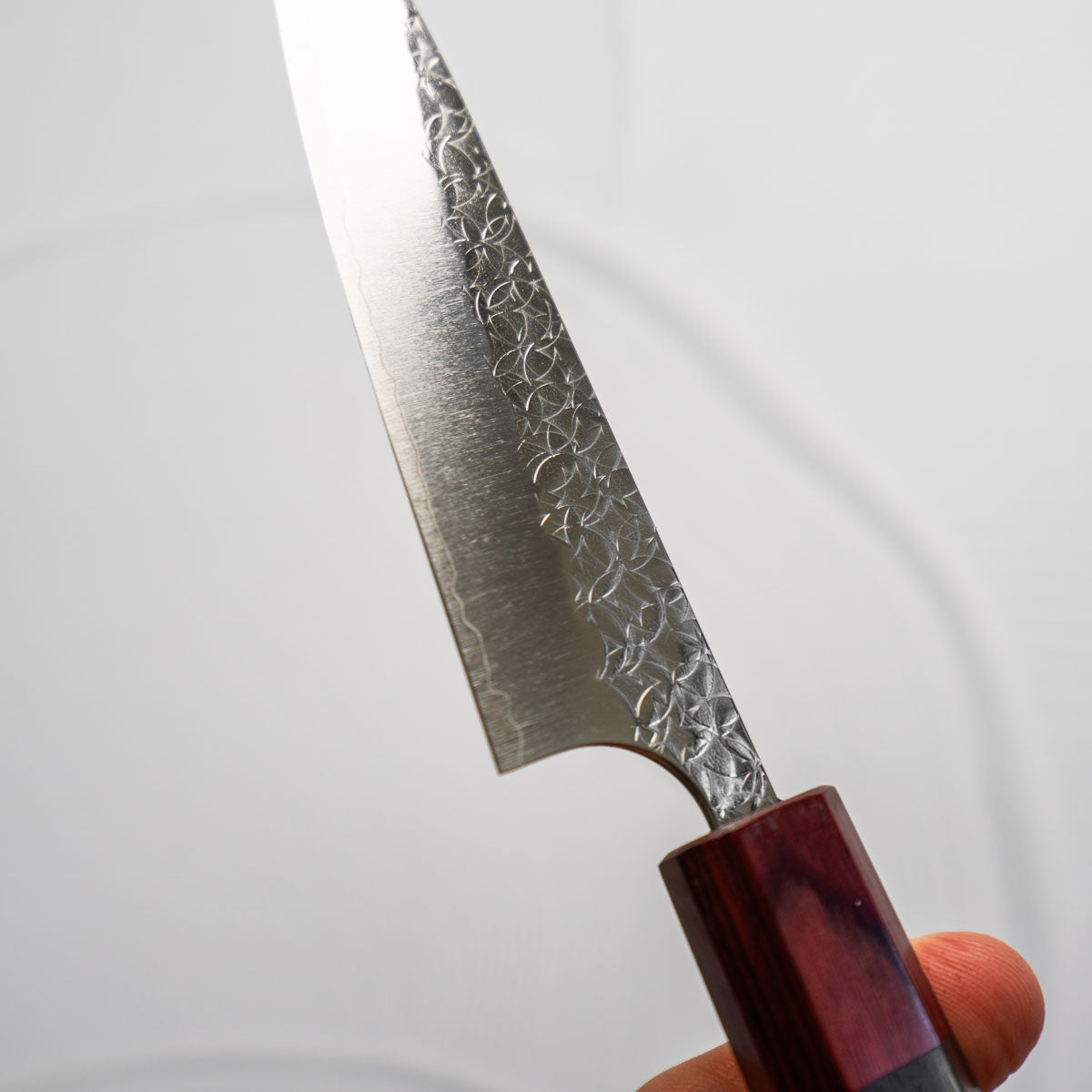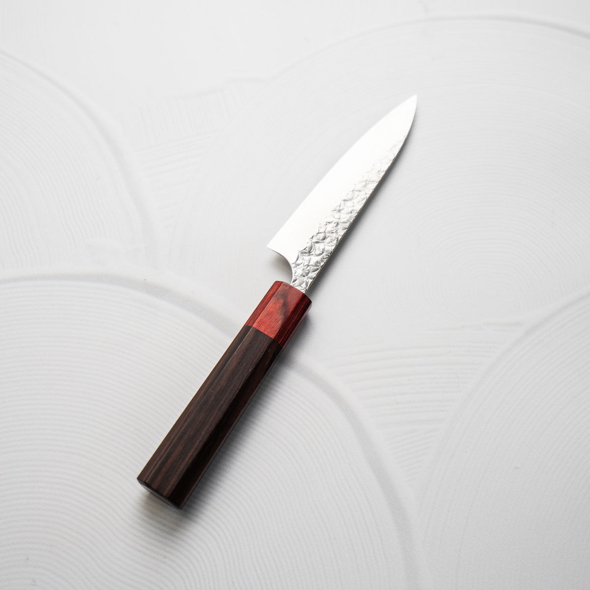The Petty knife, a quintessential tool in Japanese cuisine, is a smaller utility knife used for precise, delicate tasks. Often considered a smaller sibling to the chef's knife, it excels in hand-held tasks like peeling, trimming, and intricate cutting. Its versatility makes it an essential for detailed culinary work.