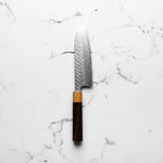 The Santoku knife, a classic in Japanese kitchens, translates to "three virtues," symbolizing its proficiency in slicing, dicing, and mincing. With a shorter, versatile blade and a balanced design, it's ideal for a range of tasks, from cutting meat to chopping vegetables, making it a beloved all-purpose tool.