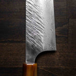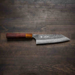 The Bunka knife, a versatile and traditional Japanese kitchen tool, features a distinctive, angular tip and a wide blade. It's designed for precision tasks like slicing, dicing, and chopping. Ideal for handling vegetables, meat, and fish, the Bunka is a multifunctional knife celebrated for its utility and unique aesthetic.