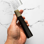 Japanese SG2, also known as R2 steel, is a high-end, powdered metallurgy stainless steel and one of the finest knife-making steels available in Japan. It is a favourite of many for its exceptional hardness and edge retention. Its fine, uniform grain structure enables razor-sharp edges, all the while holding an edge for much longer than Carbon steel knives, without needing to be concerned about rust appearing.