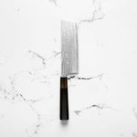 The Nakiri knife, revered in Japanese culinary traditions, is engineered for exceptional vegetable cutting. Featuring a distinct, straight-edged, and rectangular blade, it excels in creating uniform, precise cuts and aesthetic presentation. Its technical design ensures efficiency and precision, making it a valuable tool for both professional chefs and home cooks.