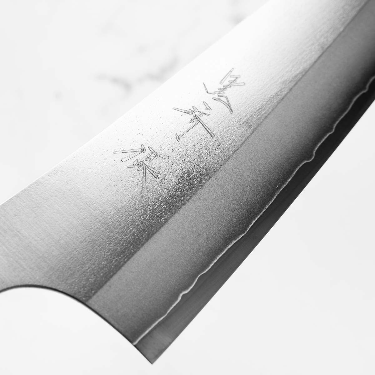 His knives are instantly recognizable for their striking Tsuchime and Suminagashi finishes, thin grinds, and use of high-performance steels such as SG2, HAP40, and stainless-clad Blue Super. Kurosaki’s Fujin series, with its dramatic wind-patterned hammer finish, helped cement his reputation as a blacksmith who blends artistry and technical brilliance in equal measure.