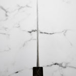 Japanese SG2, also known as R2 steel, is a high-end, powdered metallurgy stainless steel and one of the finest knife-making steels available in Japan. It is a favourite of many for its exceptional hardness and edge retention. Its fine, uniform grain structure enables razor-sharp edges, all the while holding an edge for much longer than Carbon steel knives, without needing to be concerned about rust appearing.